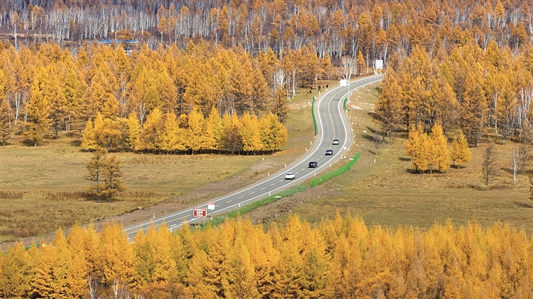 游客在内蒙古阿尔山国家森林公园驾车游玩。新华社发