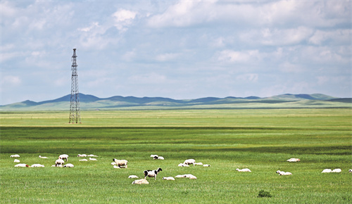 内蒙古锡林郭勒盟东乌珠穆沁旗草原绿草如茵,牛羊成群。新华社发