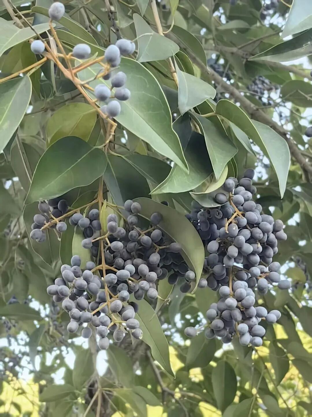 这个紫色的果果,并不是葡萄,而是“女贞子”。请千万别断错句,不是“女—贞子”,而是“女贞—子”,也就是女贞的果实。